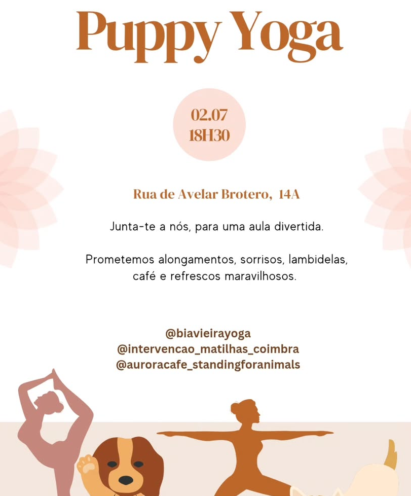 O bem-estar físico e emocional junta-se ao amor pelos animais num evento imperdível que promete conquistar corações (e caudas!) em Coimbra. A Intervenção pelas Matilhas Coimbra, em parceria com a instrutora Bia Vieira organiza uma sessão muito especial de Puppy Yoga, um conceito que une a prática de yoga ao convívio com adoráveis cachorrinhos.